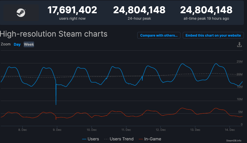 Di platform PC aja, Steam, Epic, dan GOG, Cyberpunk 2077 dinobatkan sebagai the second fastest selling PC game all the time karena sukses membukukan pre-ordered sebanyak 4.72 juta kopi sampai dengan hari perilisannya. Bahkan, menorehkan sejarah di Steam dengan jumlah player yang main suatu game sebanyak 22 juta user dalam sehari. Jebol itu, Steam!