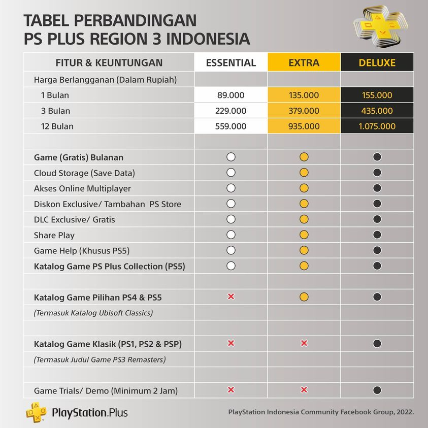 Di tahun 2022 ini, akibat begitu masif dan terstrukturnya penetrasi Gamepass sang Sri Sultan Microsoft, Sony pun keluar dari zona nyamannya. Playstation yang mungkin merasa di atas angin sejak jaman kalian mainin Roberto Carlos jadi penyerang di Winning Eleven, tanggal 24 Mei 2022 kemarin mereka bongkar formasi untuk bisa terus berkompetisi di sengitnya Gaming Champions League. Sistem membership berupa PS Plus dan langganan game di dalam PS Now dilebur menjadi satu dalam kemasan The All New Playsation Plus. Layanan ini terbagi menjadi 3 (harusnya ada tier Premium tapi Indonesia nggak kebagian), di mana hanya versi Extra dan Deluxe yang memberikan akses library game untuk dimainkan. Walau akhirnya Sony melepas banyak gamenya di library PS Plus Extra dan Deluxe, Sony tetep kekeuh untuk nggak memberikan game first party ekslusifnya ke dalam layanan tersebut secara day one perilisan.