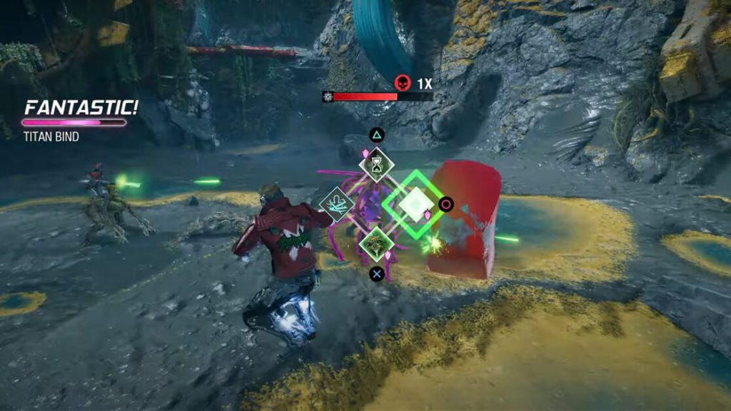 Keputusan Eidos untuk membuat Guardian of The Galaxy bukan sebagai game yang sekadar hack and slash adalah keputusan yang tepat. Guardian of The Galaxy adalah game dengan mekanik combat yang team-based. Ini tentunya juga sejalan dengan keputusan mereka yang hanya memberikan panggung tunggal ke Starlord sebagai karakter yang playable. Ya, jadi di sini kita ngatur skill Groot, Rocket, Drax, dan Gamora atas komando dari Starlord. Walau sistem seperti ini sudah sering kita temukan di mekanik combat action JRPG, penerapan seperti ini membuat Guardian of The Galaxy jadi keliatan lebih fresh dari game superhero pendahulunya yang cuma pukul-pukulan sambil pamer skin baru.