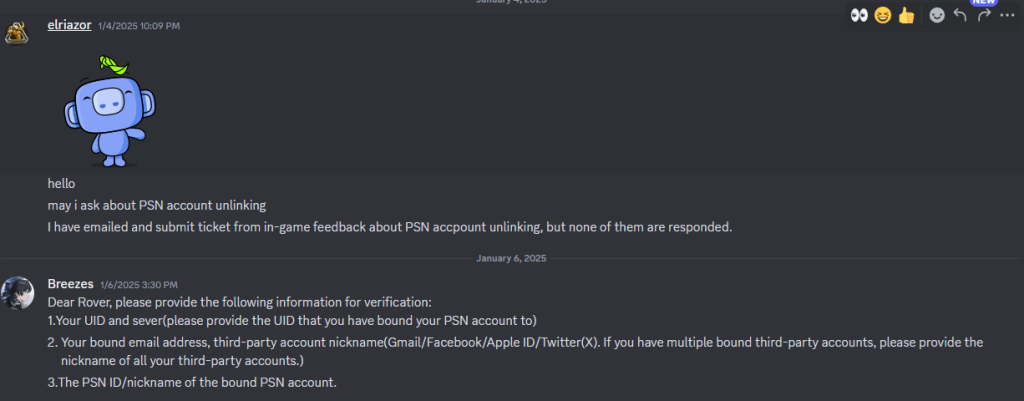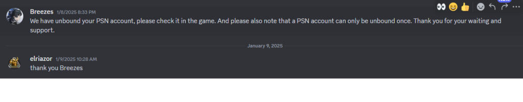 Akhirnya yang dibales malah permintaan Unlink akun PSN dari Discord. Itu pun dibalesnya 2 hari setelah gue DM. Dan nggak sampai sehari, permintaan gue langsung selesai. Ketika masuk di in-game, akun PSN gue udah tercabut dan Wuthering Waves minta gue untuk login pake email kayak baru pertama login.
